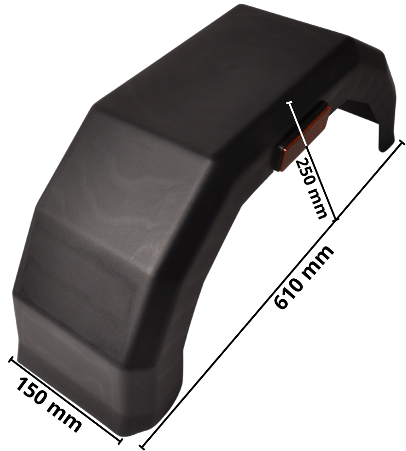 Kunststof spatbord met een vlakke bovenkant. Dit 61 cm lange spatbord is geschikt voor een enkelassige aanhangwagen. Dit kunststof spatbord is eenvoudig te monteren met de onderstaande bevestigingsmaterialen. Dit kunststof spatbord kan zowel aan de linker als aan de rechter zijde gemonteerd worden. Dit spatbord is standaard voorzien van een zijreflector.