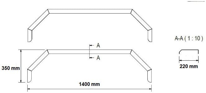 Tandem spatbord - 1400x220x350 mm - aluminium traanplaat materiaal - 5-kant