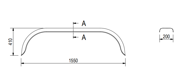 Origineel tandem spatbord metaal - 1550x410x200 mm - omtrek 2040 mm