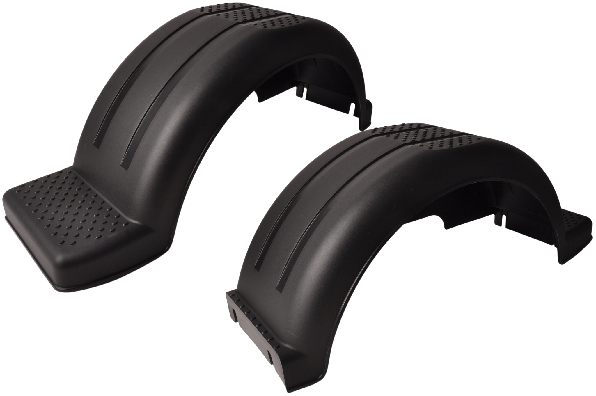 Set van twee kunststof spatborden voor 1 zijde. Eenvoudig te monteren op je aanhanger. Deze set van twee spatborden is bedoeld voor een tandemas aanhangwagen.