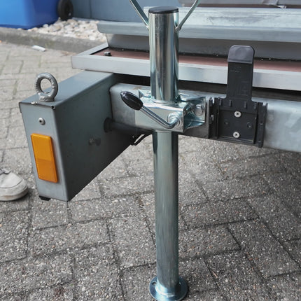 Complete set met stalen steunpoot met een buisdiameter van 48 mm word standaard inclusief bevestigingsmateriaal en klem geleverd.
