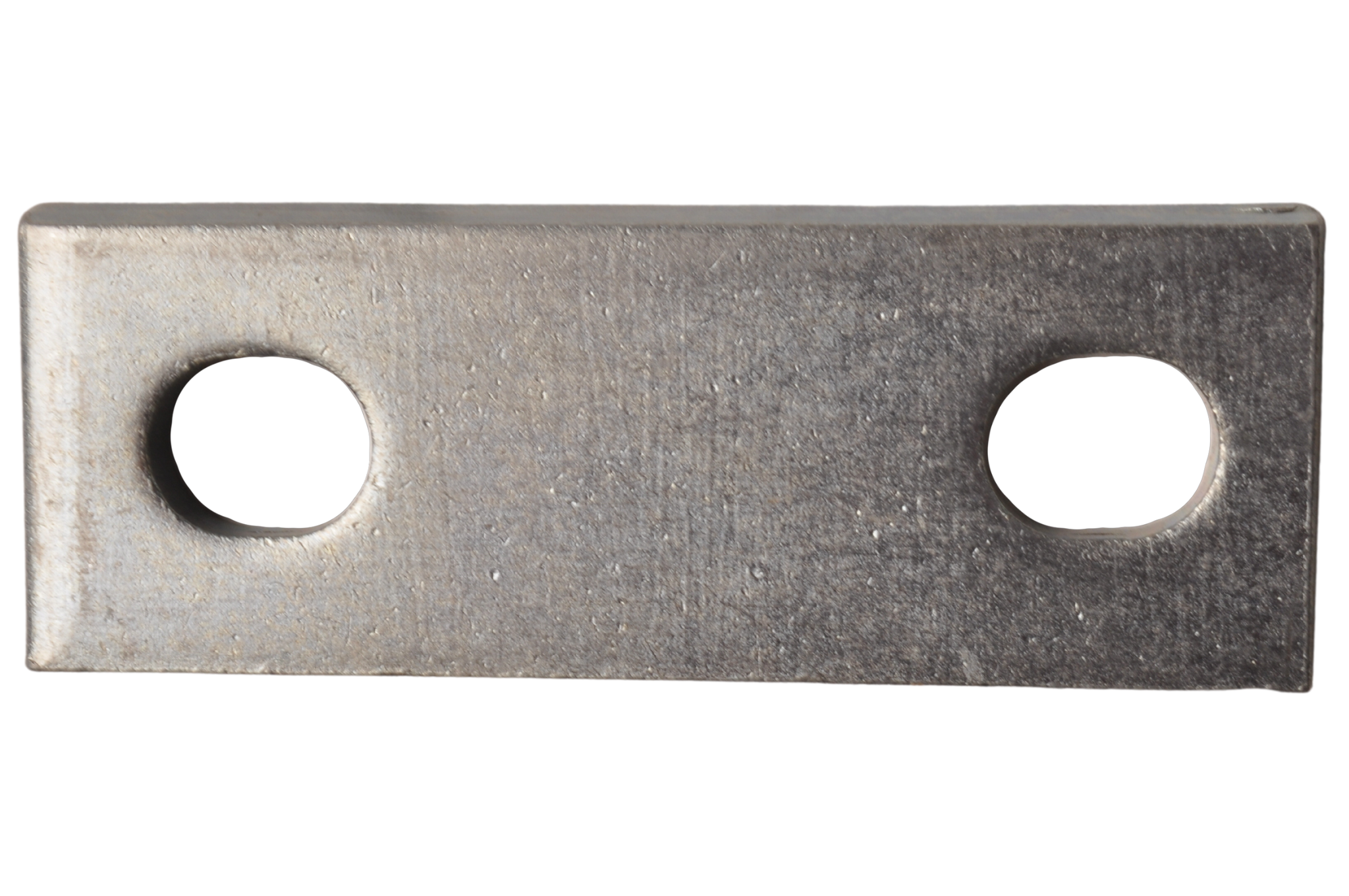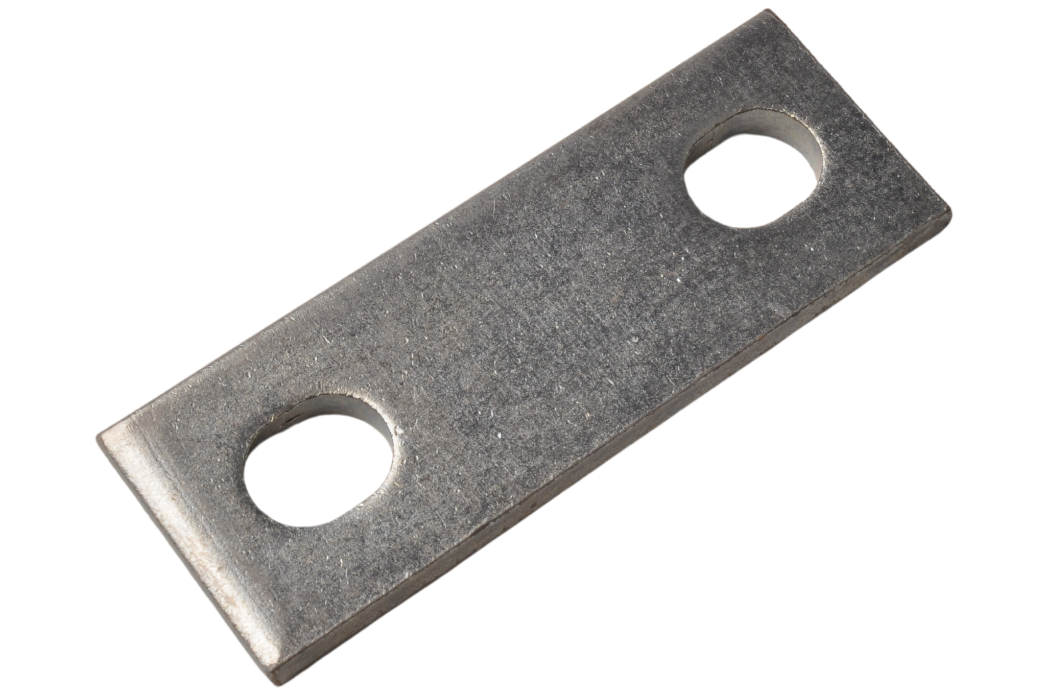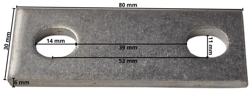 Stalen stroppenplaat met de afmetingen 80x30x6 mm. In combinatie met een u-bout kan je met een stroppenplaat een eenvoudig onderdelen vastzetten op je boottrailer.