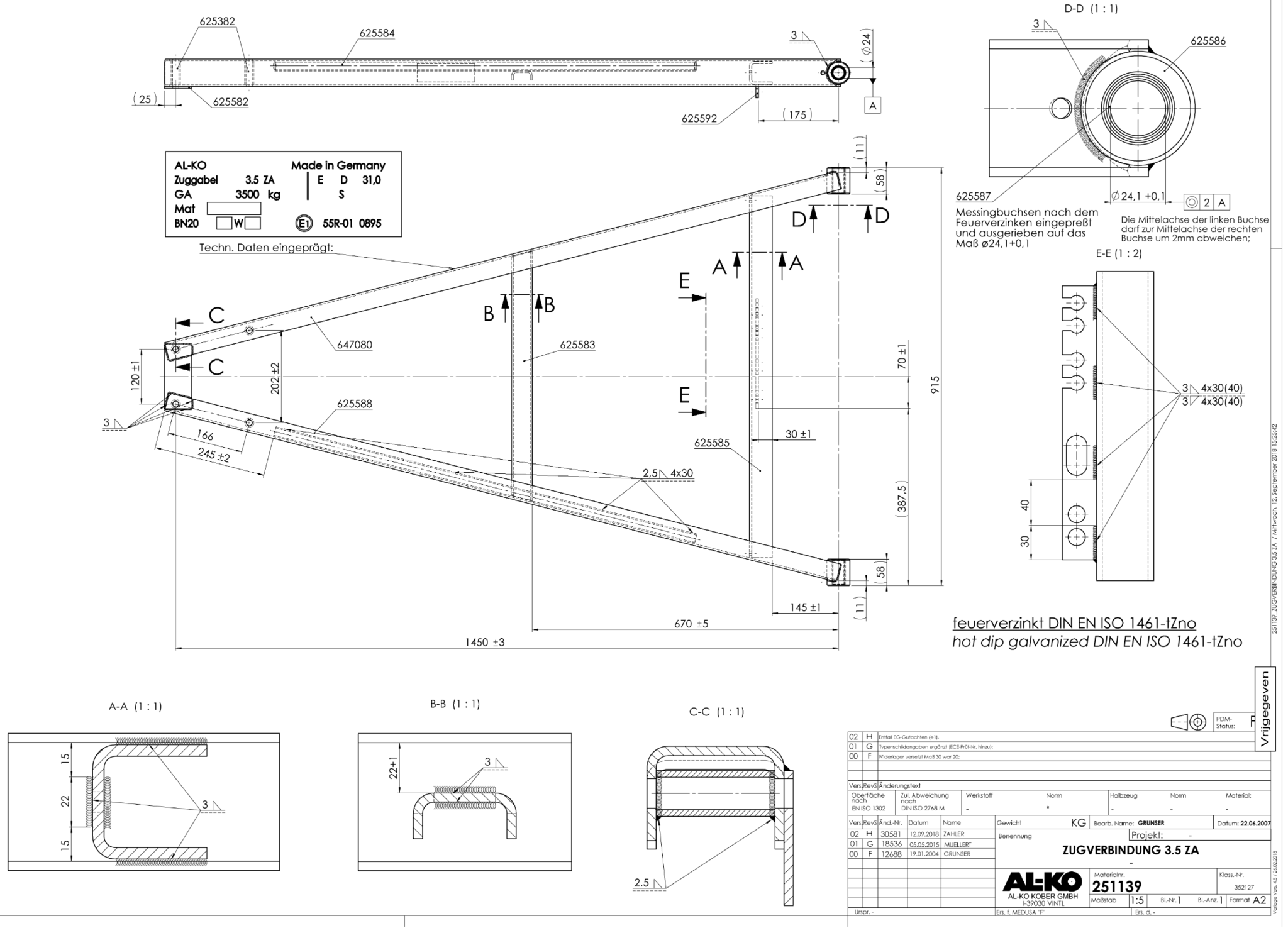 AL-KO v-dissel 3.5 ZA - 3500 kg maximaal trekvermogen - totale lengte 1485 mm.