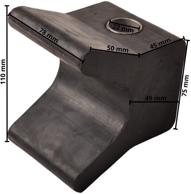 Zwarte vangmuil met de afmetingen 75x78x95 mm. Deze vangmuil wordt veel gebruikt op boottrailers.