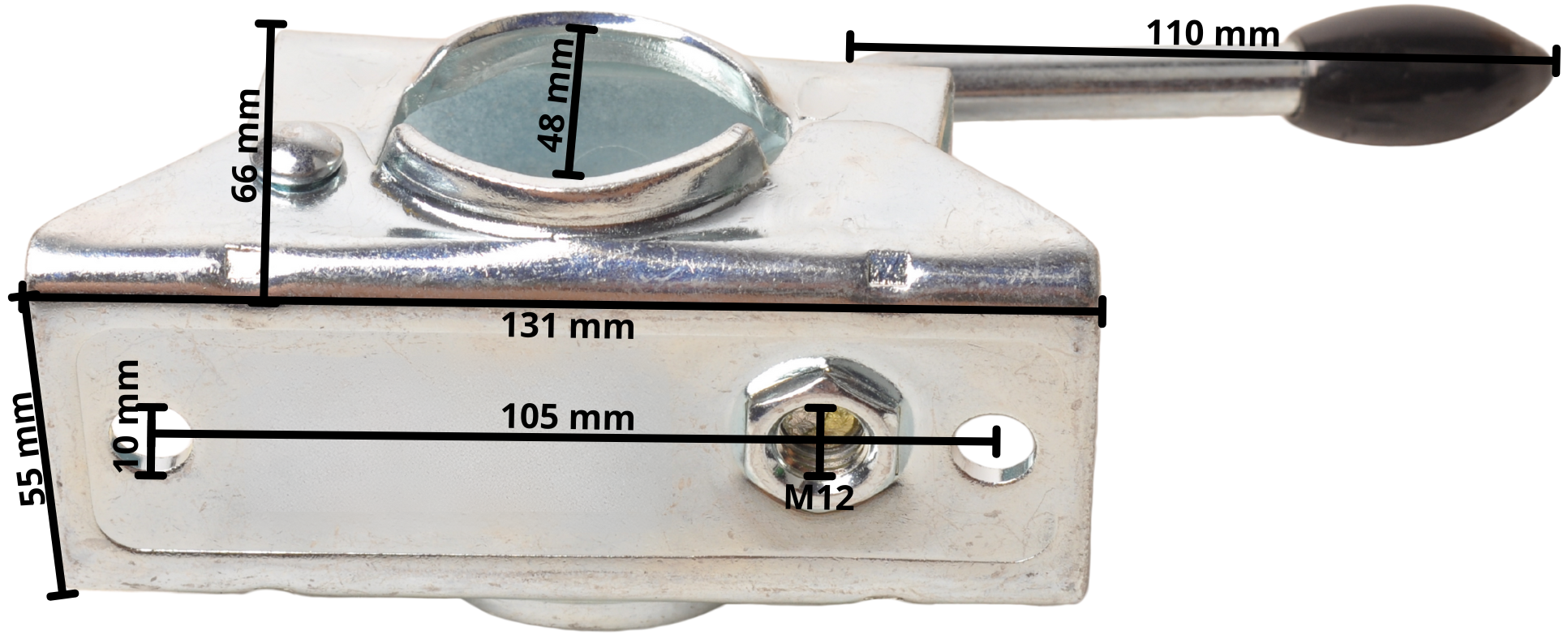 Deze neuswielklem kan met twee bouten aan de dissel worden bevestigd. Hier passen alle neuswielen met een diameter van 48 mm op. Meest gebruikte neuswiel klem voor alle ongeremde aanhangers en caravans.